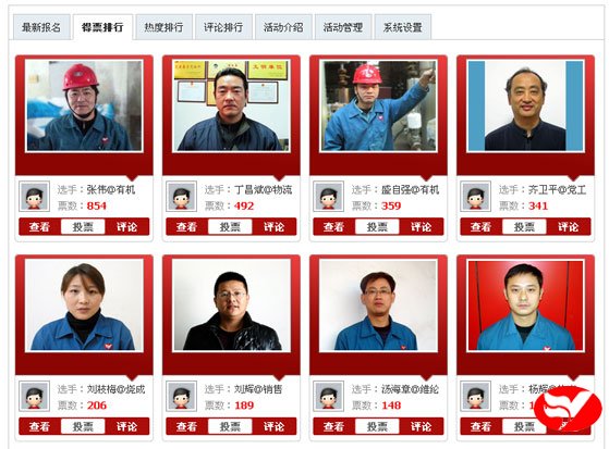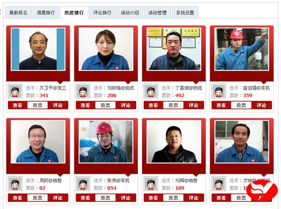 在昨天的得票前八強中,有機分廠張偉繼續跑,同時出現熱電分廠楊輝的身影;在人氣排行中,黨工部齊衛平保持先,機械設備公司方瑞林擠進前八強。